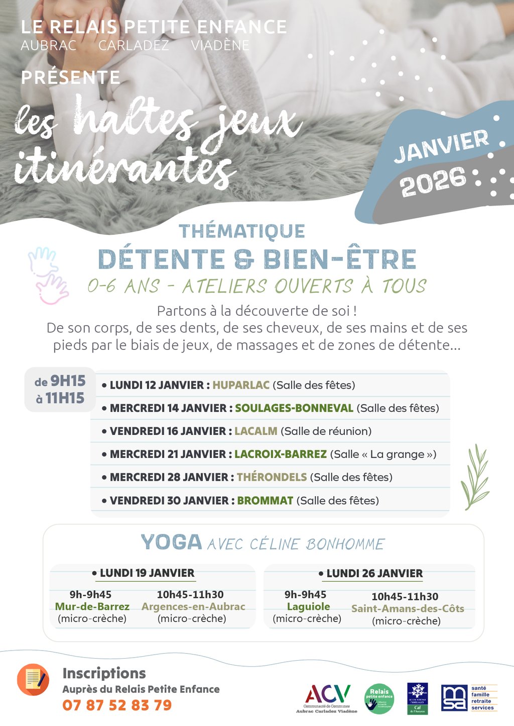 RELAIS PETITE ENFANCE : POUR JANVIER, PROGRAMME HALTES JEUX "DÉTENTE ET BIEN ÊTRE"