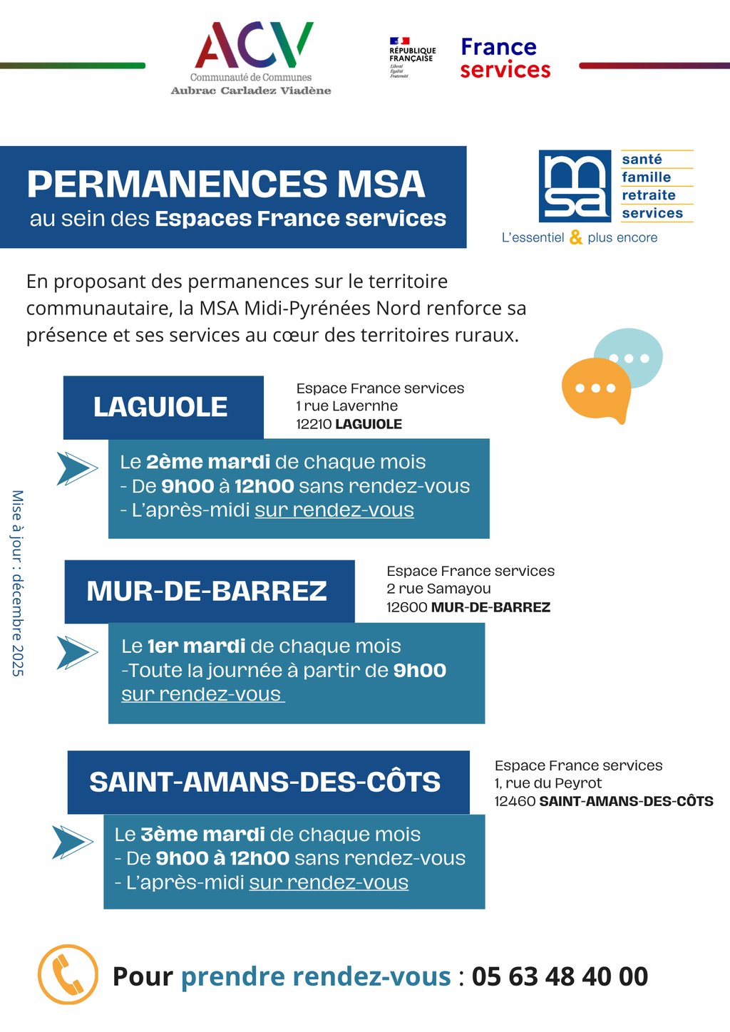 En partenariat avec la Communauté de Communes, la MSA Midi-Pyrénées Nord propose des permanences sur le territoire.