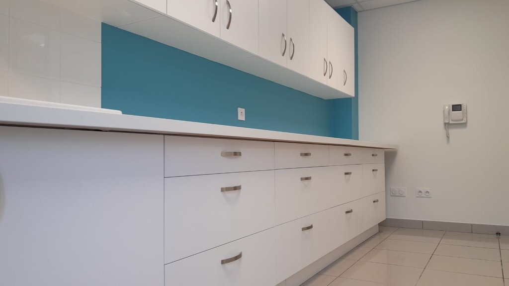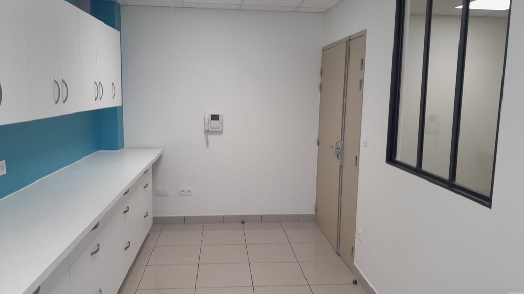 - Installation d’équipements : pose d’éléments de rangement (paillasse) et d’une verrière