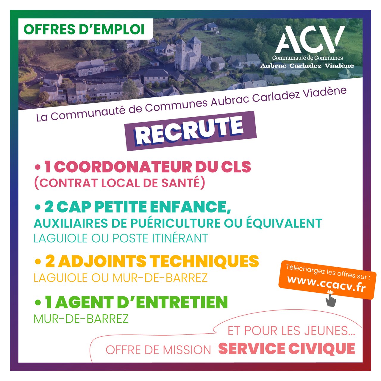 De son côté, la Communauté de Communes recrute pour les postes suivants :