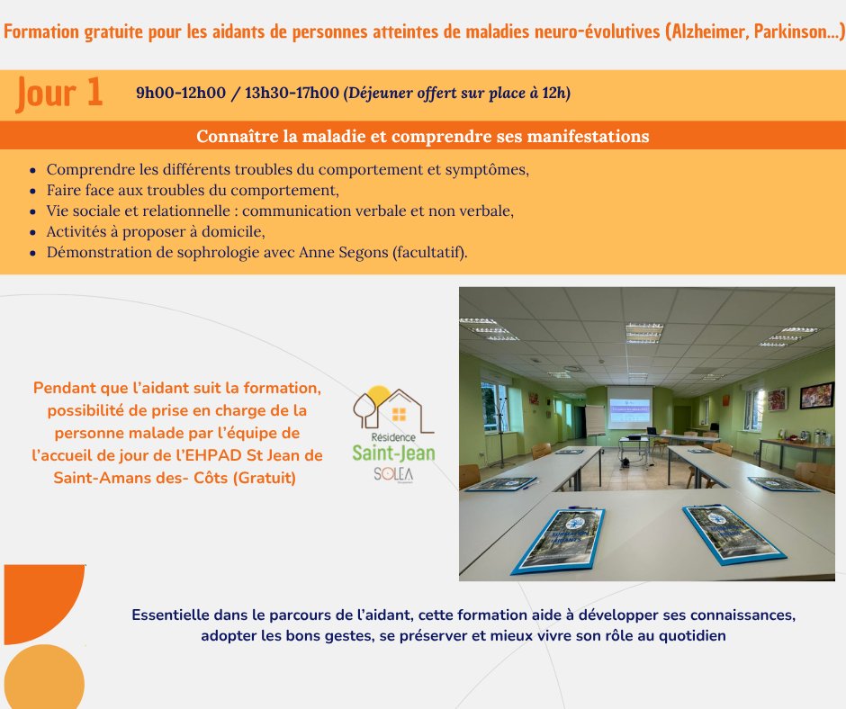 Pendant la formation, votre proche peut être pris en charge gratuitement à l'Accueil de Jour de l'EHPAD St Jean.