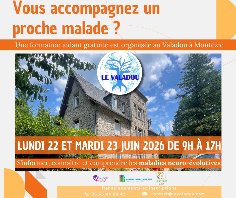 Une formation aidant gratuite est organisée au Valadou avec l'Equipe Mobile de Gériatrie de l'hôpital d'Espalion et l'EHPAD St Jean de Saint-Amans-Des-Côts.